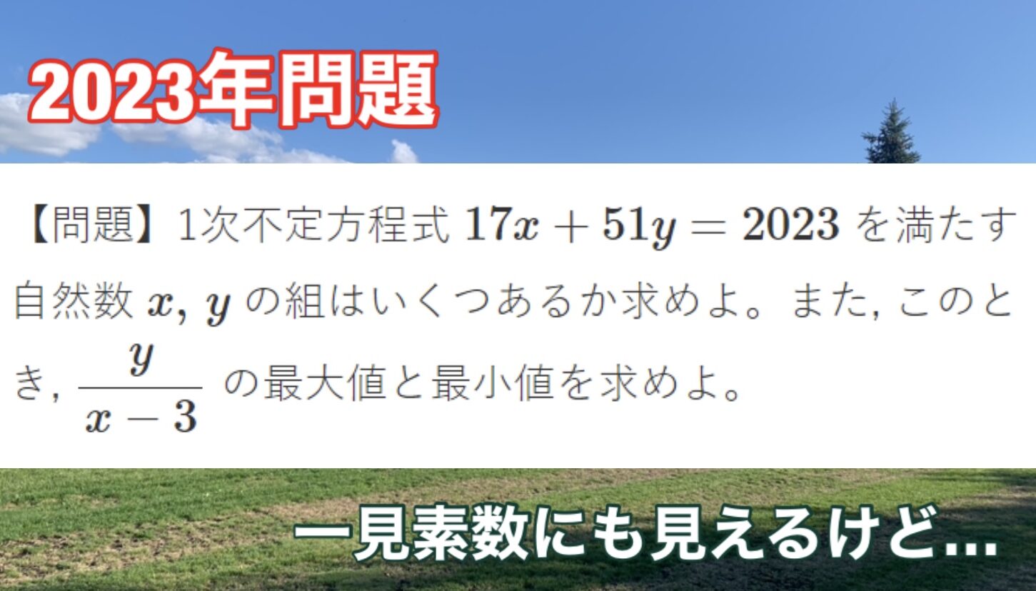 結局ポイントになりそうなのは、$2023=7 \cdot 17^2$とすぐに素因数分解できるかになりそうな気がします。