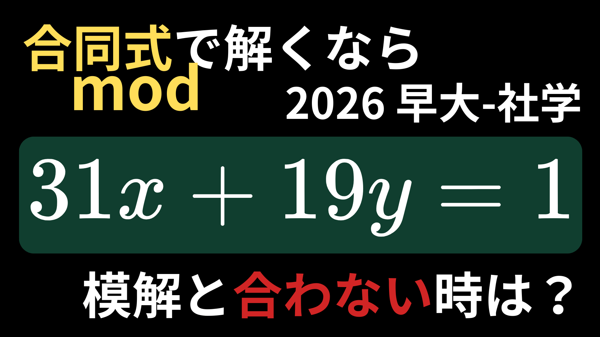 早稲田大学社会科学部2026整数問題 合同式による解法